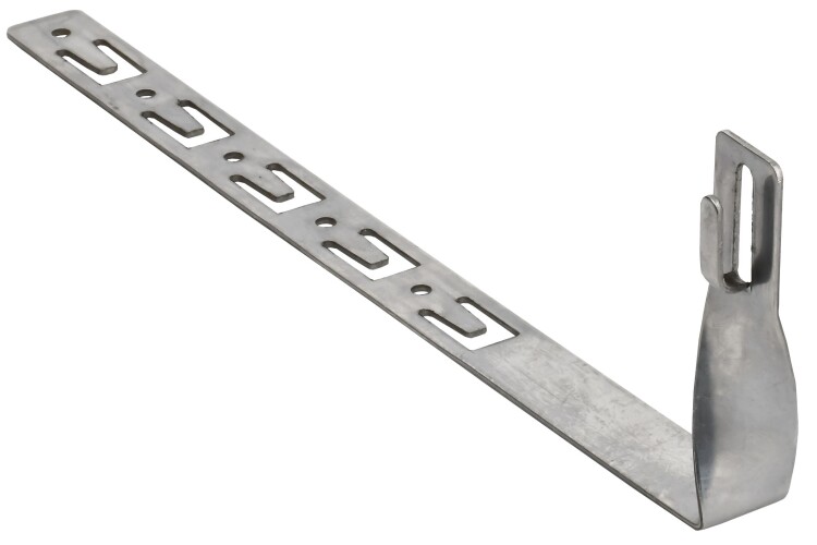 Держатель проводника круглого для черепичной кровли с безболтовым зажимом скрученный предназначен для продольного закрепления прутка на черепичной, мягкой и шиферной кровле. Держатель крепится к кровле при помощи зацепных крючков. Фиксация проводника происходит при помощи зажима в «язычке» держателя. Материал корпуса - нержавеющая сталь.