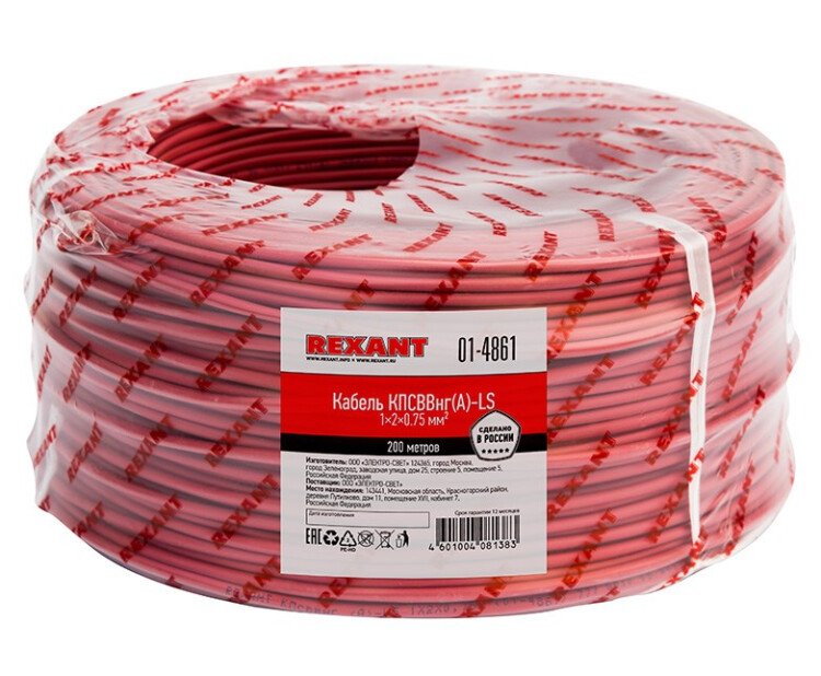 Кабель КПСВЭВ нг(А)-LS 1x2x0,75 мм² REXANT применяется для групповой прокладки в системах пожарной сигнализации, контроля доступа, а также для других систем управления, контроля связи. КПСВЭВ нг(А)-LS эксплуатируется внутри и вне помещений, при условии защиты от прямого воздействия солнечного излучения и атмосферных осадков.