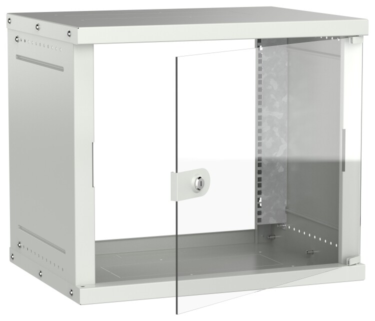 Шкаф настенный 19" 9U 600х450мм стеклянная дверь серый GENERICA