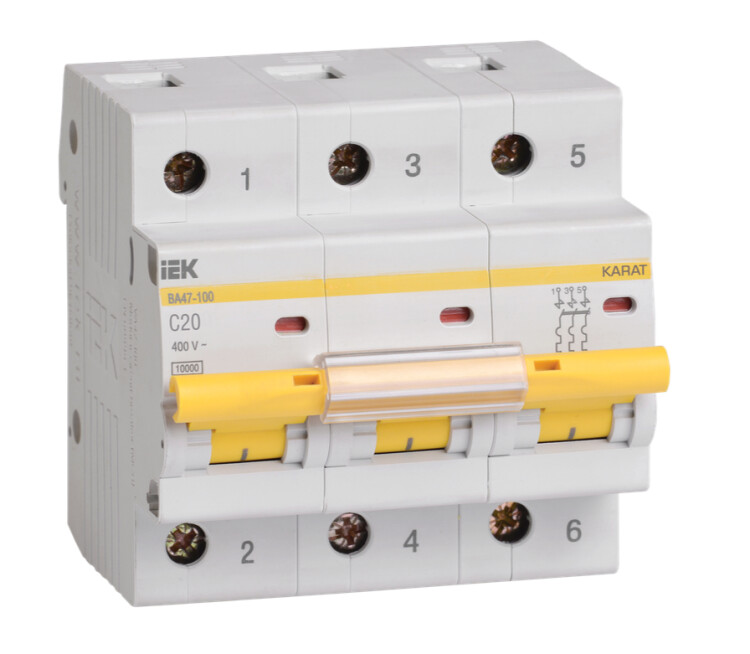 Выключатель автоматический ВА47-100 3P 20А 10кА х-ка C, IEK MVA40-3-020-C
