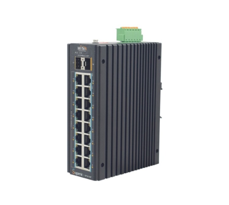 Wi‑Tek Superic SP3018F — неуправляемый промышленный коммутатор уровня L2 с поддержкой PoE. Предназначен для построения индустриальных сетей с повышенными требованиями к отказоустойчивости, в т. ч. уличных систем видеонаблюдения и сложных сетевых топологий, включая кольцевые.