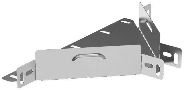 Отвод Т-образный горизонтальный предназначен для организации Т-образного или X-образного отвода кабельной трассы в горизонтальной плоскости. Аксессуар поставляется в плоском виде, имеет направляющую перфорацию для сгиба и сборки изделия перед установкой. Стыковка аксессуара с лотком осуществляется за счёт телескопического соединителя. Подходит для всех типов листовых лотков серии ESCA. Крышка на аксессуар заказывается отдельно. Аксессуар изготовлен из стали оцинкованной методом Сендзимира (защитный слой цинка не менее 5-10 мкм).