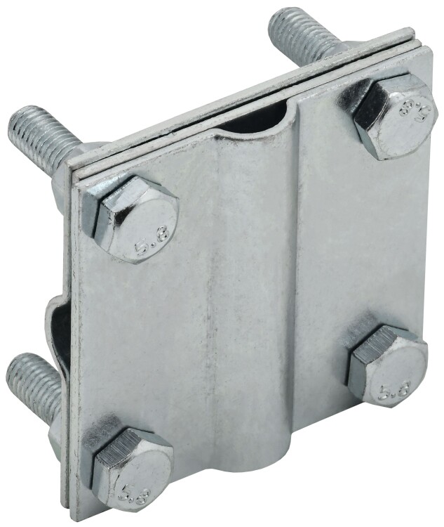 Зажим крестообразный с разделителем полоса/пруток-полоса/пруток предназначен для крестообразного соединения плоских и круглых проводников. Состоит из трёх пластин. Средняя, плоская пластина, позволяет увеличить количество соединяемых проводников. Материал корпуса - сталь с гальваническим цинковым покрытием.