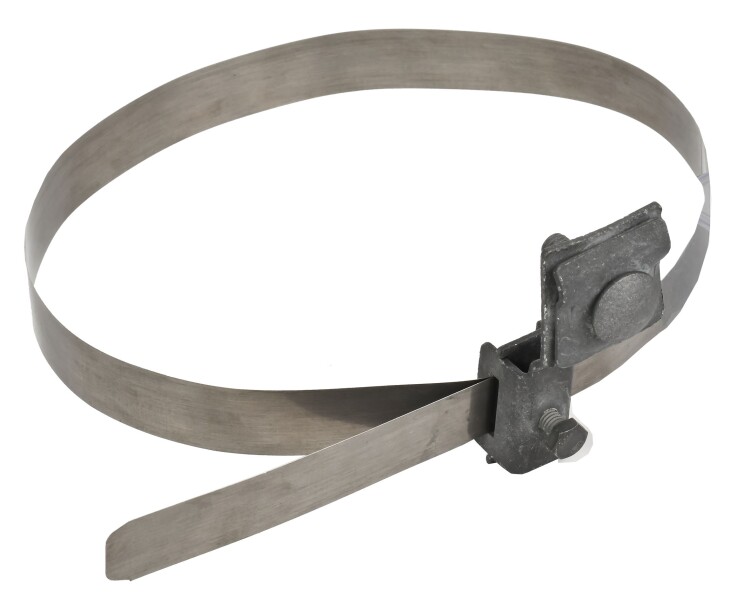 Держатель проводника товарного знака IEK предназначен для монтажа круглого проводника на элементах зданий, например водосточных трубах. Фиксация проводника происходит путем болтового соединения. Держатель крепится на поверхности при помощи ленты из нержавеющей стали. Материал держателя - сталь с термодиффузионным цинковым покрытием.