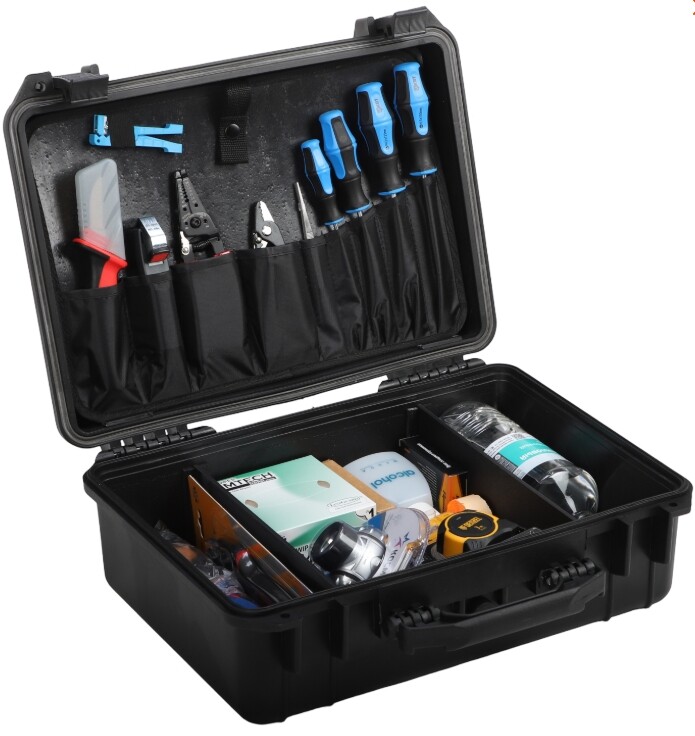Предназначен для разделки и монтажа оптического кабеля (ВОЛС). Он укомплектован необходимыми для этих целей инструментами Greenlee и других ведущих производителей (вплоть до лупы, фонарика и салфеток для притирания волокна). Набор пригоден для разделки подвесных, городских и магистрально-зоновых волоконно-оптических кабелей при монтаже оптических линий связи. Имея в своем распоряжении НИМ-25, можно работать не только с легким универсальным внутриобъектовым кабелем, но и с бронированным кабелем, предназначенным для внешней прокладки. Все инструменты удобно распределены по специальным отделениям и карманам жесткого корпуса, так что надежное хранение и быстрый доступ к ним гарантированы.