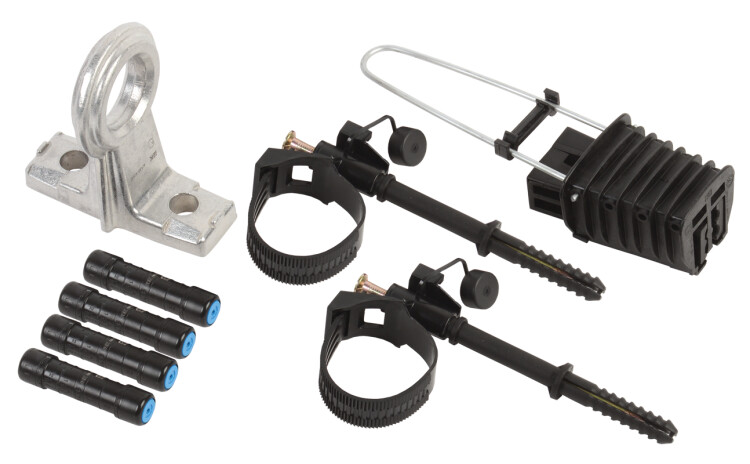 Комплект фасадного крепления типа КФК предназначен для промежуточного крепления и стяжки в пучок самонесущих изолированных проводов (СИП), напряжением до 1 кВ, на опорах и стенах зданий. Корпус изготовлен из полимера, устойчивого к ультрафиолетовому излучению и погодно-климатическим факторам. Дюбельная часть арматуры устанавливается в отверстие 012 мм, фиксируется гвоздем. Комплект КФК имеет специальный паз, позволяющий осуществить прокладку второй линии вдоль имеющейся трассы с помощью хомутов ХС. Комплект крепления к зданию КЗ-8 ИЭК включает в себя: 1) КАМ-4000 - 1 шт. 2) ЗАБ 16-25 - 1 шт. 3) КФК 12-47.6 - 2 шт. 4) ГИА 10-16 - 2 шт. 5) ГИА 16 - 2 шт. Комплекты крепления призваны облегчить монтаж провода СИП при осуществлении ответвлений от опор или подведения СИП к зданию.