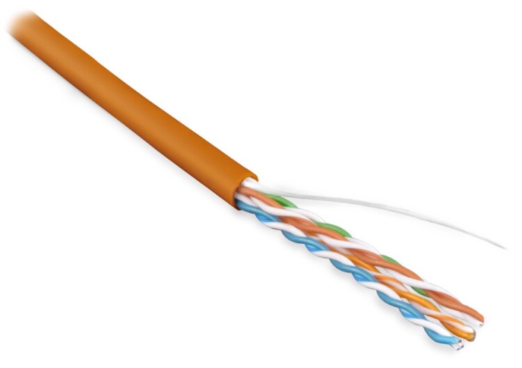 Hyperline UUTP4-C5E-S24-IN-PVC-OR-100 (100 м) Кабель витая пара, неэкранированная U/UTP, категория 5e, 4 пары (24 AWG), одножильный (solid), PVC, -20°C – +70°C, оранжевый - гарантия: 15 лет компонентная, 25 лет системная.