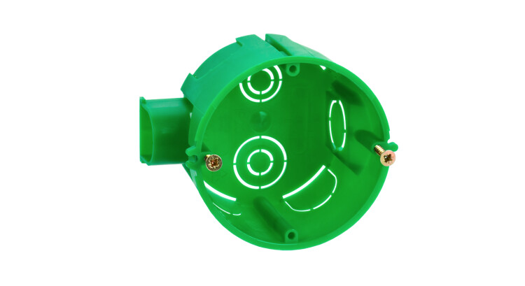 Подрозетник с одним стыковочным узлом используется для установки в сплошные стены, например, из кирпича, бетона. Электроустановочные изделия креплениями 60 мм. фиксируются в коробке на винтах, которые идут в комплекте. Подрозетник имеет 8 пластиковых заглушек от 10 до 20 мм. для ввода кабеля или гофротрубы. Конструкция стыковочных узлов коробок позволяет соединять их между собой без аксессуаров с расстоянием между центрами 71 мм. Материал изготовления - полипропилен. Материал коробок является безгалогенным («HF» — halogen-free). Количество вводов: 4. Температура эксплуатации: -15...+60. Степень защиты: IP20. Цвет: зеленый. Размер: 68х45 мм.