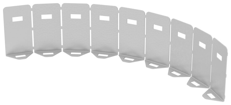 Перегородка предназначена для разделения фасонной секции на две и более части, в случае монтажа проводки разного типа (информационной и силовой) для исключения наводок. Совместимость только с радиусными горизонтальными поворотами 90 и 45 градусов серии ESCA 5.
