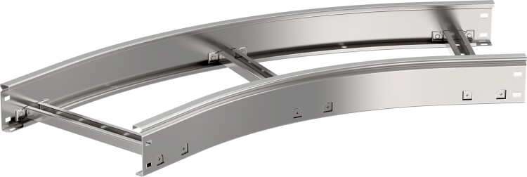 Применяется для организации поворота кабельной трассы на 45° в горизонтальной плоскости с радиусом поворота 600 мм. Изготавливается из рулонной холоднокатанной стали предварительно оцинкованной по методу Сендзимира (ГОСТ 14918-2020).