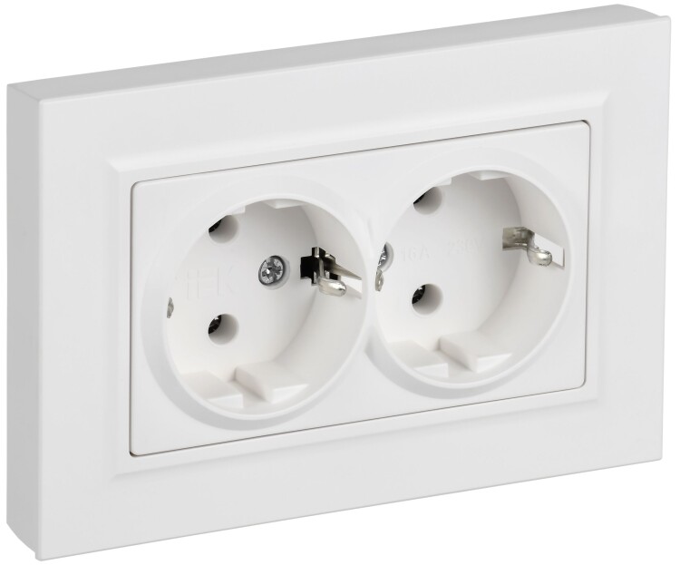 BRITE Розетка 2-местная с заземлением без защитных шторок плоская 16А в сборе РСПл12-3-БрАБ арктичес