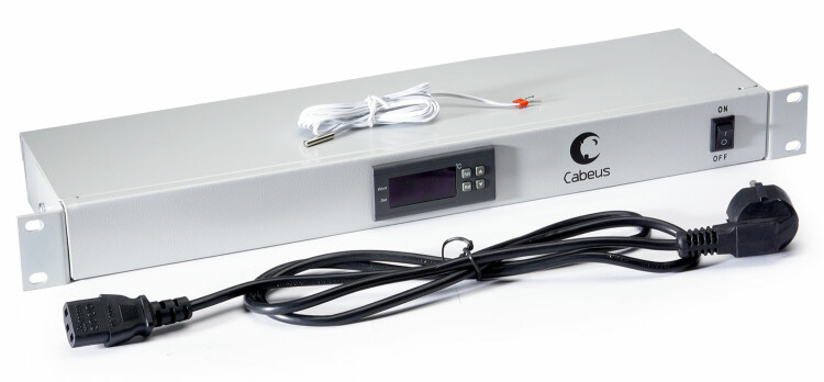 Микропроцессорная контрольная панель предназначена для подключения 2-х вентиляторов и поддержания температуры в телекоммуникационном шкафу на заданном уровне. Состоит из стального корпуса с кронштейнами для крепления на направляющих 19” шкафов. С лицевой стороны имеется кнопка включения/выключения панели и терморегулятор. С задней стороны имеется разъем IEC-60320 C14 для подключения шнура питания панели, разъем для подключения температурного датчика и 2 разъема IEC-60320 C13 для подключения вентиляторов. Питание модуля осуществляется подключением его к сети напряжением 220В с помощью шнура из комплекта поставки Schuko CEE 7/7-С13, длиной 1,5 м. Покрытие корпуса выполнено ударопрочной порошковой краской серого цвета RAL 7035.