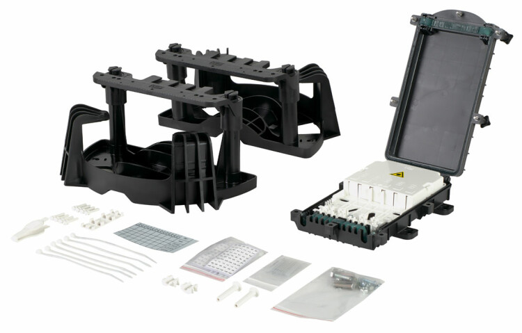 Данный комплект содержит в себе 2 изделия: 1) УПМК-Панда комплект для крепления муфт МКО-П ССД Номенклатурный номер: 130106-00552. 2) Муфта-кросс МКО-П1/С09-2/4SC-1PLC8-SC/APC-10SC-10SC/APC-2SC/APC ССД. Номенклатурный номер: 130408-00053.