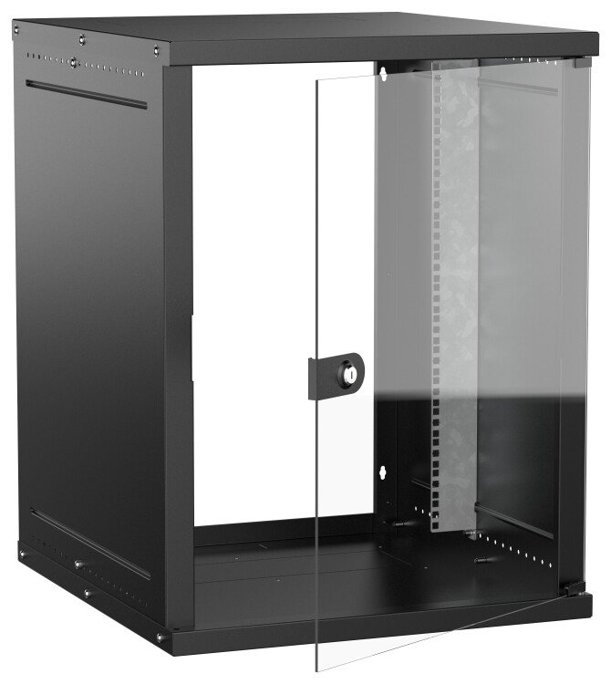 Шкаф настенный 19" 15U 600х650мм стеклянная дверь черный GENERICA