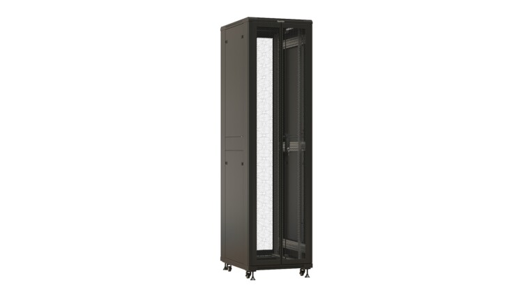 Шкаф напольный 19", 47U, 2277x600х1000мм, двери распаш. перф., черн., Hyperline TTBR-4761-DD-RAL9004