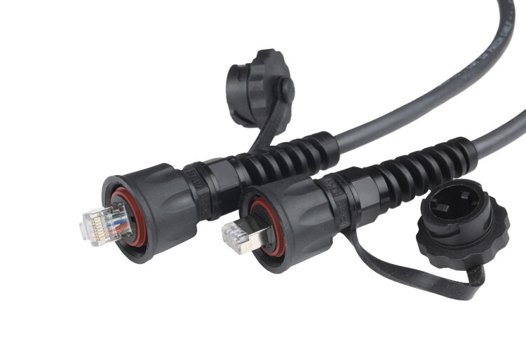 Hyperline PC-IE-LPM-STP-RJ45-RJ45-C5e-10M-BK Промышленный патч-корд F/UTP, экранированный, IP67, категория 5e, с защитными крышками, 10 м, черный