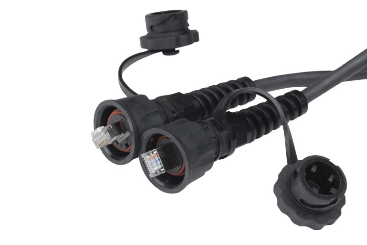 Hyperline PC-IE-LPM-STP-RJ45-RJ45-C5e-3M-BK Промышленный патч-корд F/UTP, экранированный, IP67, категория 5e, с защитными крышками, 3 м, черный