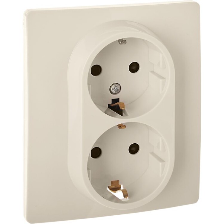 Розетка двойная с заземлением, с защитными шторками для скрытого монтажа Inspiria, цвет "Слоновая кость", максимальный ток 16А, напряжение ~250В, максимальная мощность 3680Вт, винтовые зажимы. Применяется для присоединения однофазных электрических потребителей к сети переменного тока в зданиях с проводкой с заземлением (с защитным проводником). Позволяет компактно разместить две розетки в одном установочном месте.