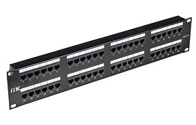 Коммутационные панели или патч-панели являются важнейшей частью любой СКС и IT-инфраструктуры здания и сооружения с большим количеством информационных розеток и терминальных портов конечных пользователей, которые необходимо коммутировать на порты активного сетевого оборудования, размещенного в серверных и распределительных узлах. В зависимости от способа крепления, масштабности кабельной системы, типа сети в ассортименте патч-панели для монтажа в 19-дюймовый конструктив, по количеству портов: 24-, 48-, категории 5E, в экранированном исполнении и без защитного экрана. Патч-панели для монтажа в 19" шкаф или стойку соответствуют стандарту 19" (482,6 мм), имеют отверстия с левой и правой стороны для крепления на профиль, производятся высотой 1 или 2 юнита.