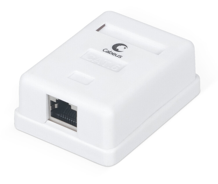 Экранированная компьютерная розетка настенного монтажа. Соответствует характеристикам категории 6. Имеет 1 порт RJ-45 (8р8с). На печатной плате установлены контакты типа Dual IDC с цветной маркировкой по двум стандартам: T568 А и B. Ножи контактов располагаются под 45°, что лучше сказывается на передаточных характеристиках разъема. Для заделки проводников подходят ножи тип 110 и Krone. Для фиксации экрана кабеля предусмотрен специальный металлический зажим. В комплект розетки входит двусторонняя клеевая площадка и винты для крепления к стене.
