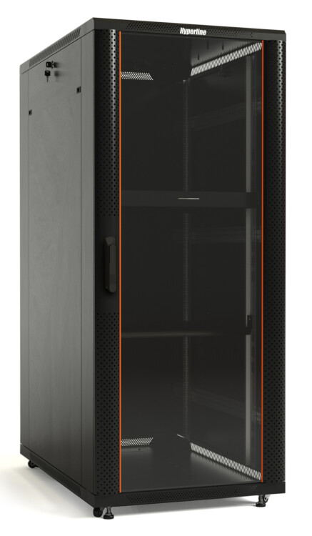 Шкаф напольный 19", 37U, 1833х600х600мм, стекл. передняя дверь, задняя сплош., черный, Hyperline TTB-3766-AS-RAL900