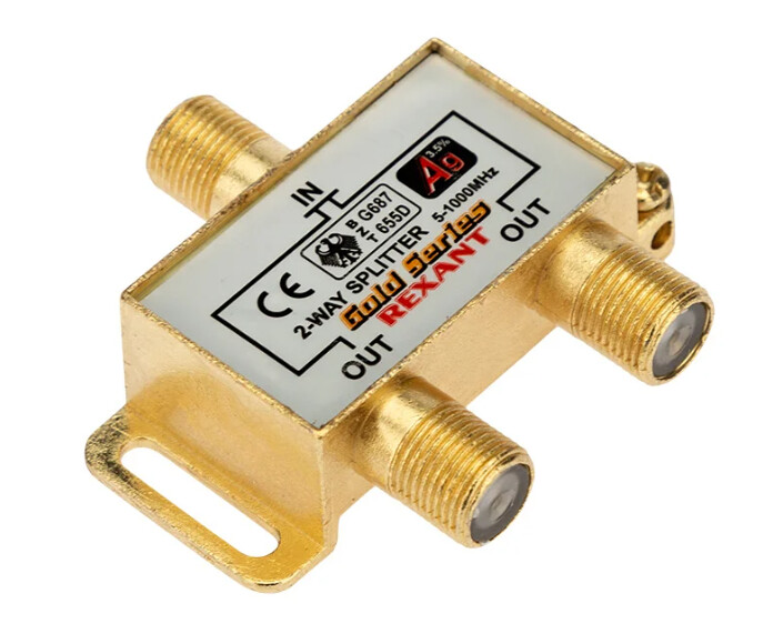 Телевизионный делитель или сплиттер предназначен для телевизионных систем и используется в домах и квартирах, где требуется подключить несколько телевизоров к одной антенне. Сплиттер распределяет поступающий на вход сигнал поровну на его выходы, что обеспечивает одинаково четкое изображение на всех подключенных устройствах. Устройство оснащено двумя выходами для сигнала и подключается с помощью стандартных F-разъемов. В комплекте поставляется 3 F-разъема. Пайка внутри делителя осуществляется с использованием золотосодержащего припоя, что позволяет получить сигнал высокого качества и увеличить надежность. Данный делитель подходит для сигналов с частотой 5-1000 МГц, что соответствует стандартному эфирному телевиден