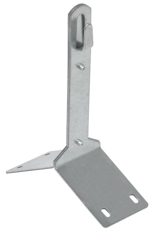Держатель проводника круглого 8 – 10 мм для конька h = 110 мм товарного знака IEK используется для закрепления прутка молниезащитной сетки на коньке скатной кровли. Позволяет разместить проводник на расстоянии 110 мм от конька. Для крепления на коньке держатель имеет четыре отверстия под винт диаметром 5 мм.