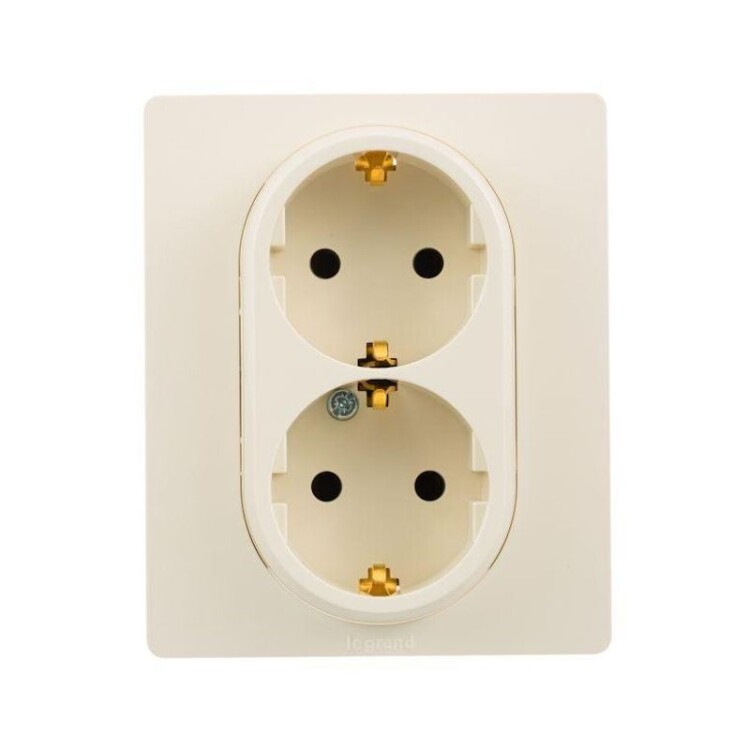 ETIKA Розетка 2-местная с заземлением без защитных шторок в сборе 16А слоновая кость