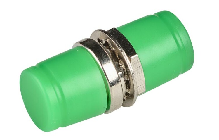 Адаптер (оптическая розетка) предназначен для стыковки оптических соединителей (коннекторов, разъёмов) FC-типа с угловой сферической (APC) полировкой одномодового (SM) волокна. Корпус розетки сделан из латуни с никелевым покрытием. Стыковка наконечников оптических соединителей осуществляется при помощи прецизионной центрирующей втулки, изготовленной из циркониевой керамики. Фиксация разъёмов осуществляется с помощью резьбового соединения диаметром 8 мм. На присоединительных частях корпуса адаптера имеются выемки под ключ вилки коннекторов. Крепление розетки на адаптерной планке осуществляется с помощью шайбы-гровер и гайки с диаметром резьбы 9,0 мм. На резьбовой части крепёжного диаметра адаптера имеется фаска, образуя в сечении форму латинской буквы D. Адаптеры комплектуются пластиковыми колпачками зелёного цвета для защиты от пыли до установки в них коннекторов.