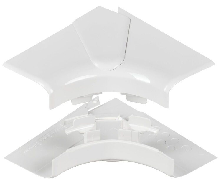 Угол внутренний изменяемый предназначен для соединения двух кабель-каналов одинакового сечения под внутренним углом 80–100°. Позволяет не разрезать кабель-канал под острым углом, обеспечивает заявленную степень защиты IP40, улучшает внешний вид и скрывает место разреза без излишнего утолщения кабельной трассы. Угол включает в себя два элемента — для верхней и нижней частей кабель-канала, между которыми защёлкивается крышка. Цвет: белый.