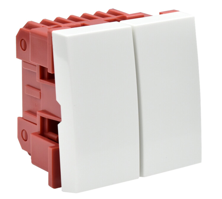 Модульные электроустановочные изделия 45х45 серии ПРАЙМЕР предназначены для организации рабочего места с применением кабель-каналов, напольных лючков или розеточных блоков, а также для открытого монтажа в коробки типа КМКУ. Выключатель предназначен для включения и отключения электрических цепей в сетях переменного тока напряжением до 250 В частотой 50 Гц и номинальным током 10 А. Метод действия на выключатель - клавишный. Количество клавиш - 2 шт. Размеры, ВхШхГ,мм: 45х45х36,6. Цвет - белый. Размеры модульных ЭУИ ПРАЙМЕР: 1 модуль = 45х22,5 мм 2 модуля (1 пост) = 45х45 мм