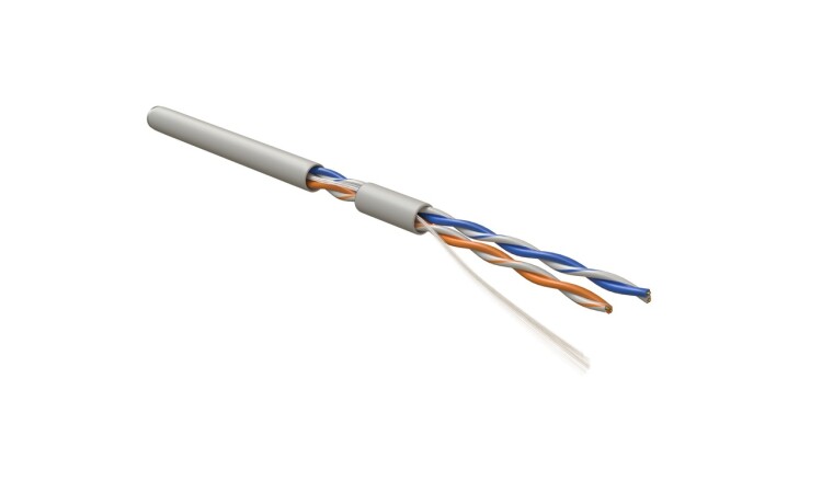 Hyperline UUTP2-C5-S24-IN-LSZH-GY-500 (500 м) Кабель витая пара, неэкранированный U/UTP, категория 5, 2 пары 24 AWG, 2х2х0,51 мм, однопроволочные жилы, LSZH, нг(А)-HF, внутренний -40°C – +75°C, серый