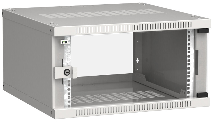 Шкаф настенный 19", 6U, 600х600мм, стекл. дверь, серый, LINEA WE, ITK LWE3-06U66-GF