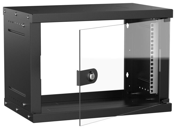 Шкаф настенный 19" 6U 550х350мм стеклянная дверь черный GENERICA