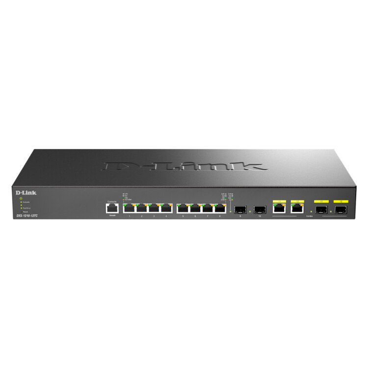 Управляемый L2+ коммутатор DXS-1210-12TC, оснащенный 8 портами 10GBase-T, 2 портами 10GBase-X SFP+ и 2 комбо-портами 10GBase-T/SFP+, осуществляет коммутацию трафика на скорости до 10 Гбит/с и предназначен для использования в сетях предприятий малого и среднего бизнеса. Благодаря наличию комбо-портов 10GBase-T/SFP+, DXS-1210-12TC предоставляет широкие возможности подключения, упрощая, таким образом, интеграцию в сеть. За счет высокой производительности данный коммутатор позволяет использовать такие услуги, как облачные сервисы, виртуализация, а также приложения server-to-server. DXS-1210-12TC является экономически выгодным решением для организации сетей 10 Gigabit Ethernet.