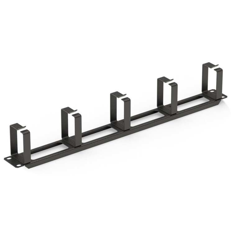 DANNMAN CO-1U-MR-RAL9005 — горизонтальный кабельный организатор с металлическими кольцами, предназначенный для упорядоченного размещения и фиксации кабелей в телекоммуникационных шкафах и стойках стандарта 19".