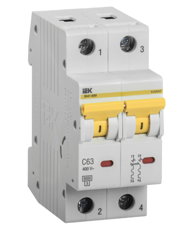 Выключатель автоматический ВА47-60М 2Р 63А 6 кА х-ка С, IEK MVA31-2-063-C