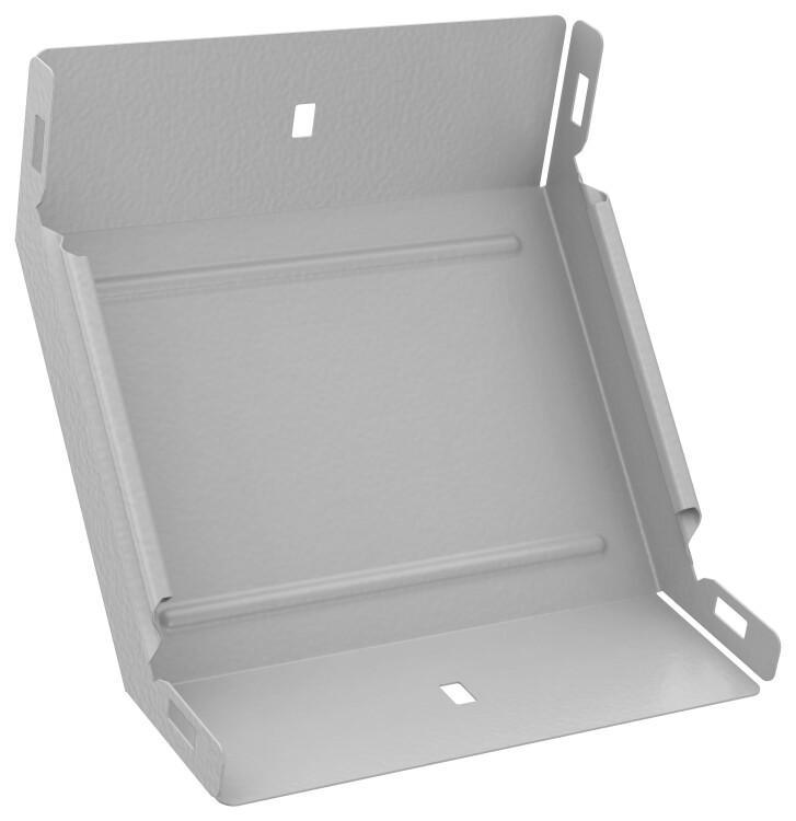 Поворот вертикальный внутренний на 90° предназначен для организации поворота кабельной трассы в вертикальной плоскости. Стыковка аксессуара с лотком осуществляется за счёт телескопического соединителя. Подходит для всех типов листовых лотков серии ESCA. Крышка на аксессуар заказывается отдельно. Аксессуар изготовлен из стали оцинкованной методом Сендзимира (защитный слой цинка не менее 5-10 мкм).