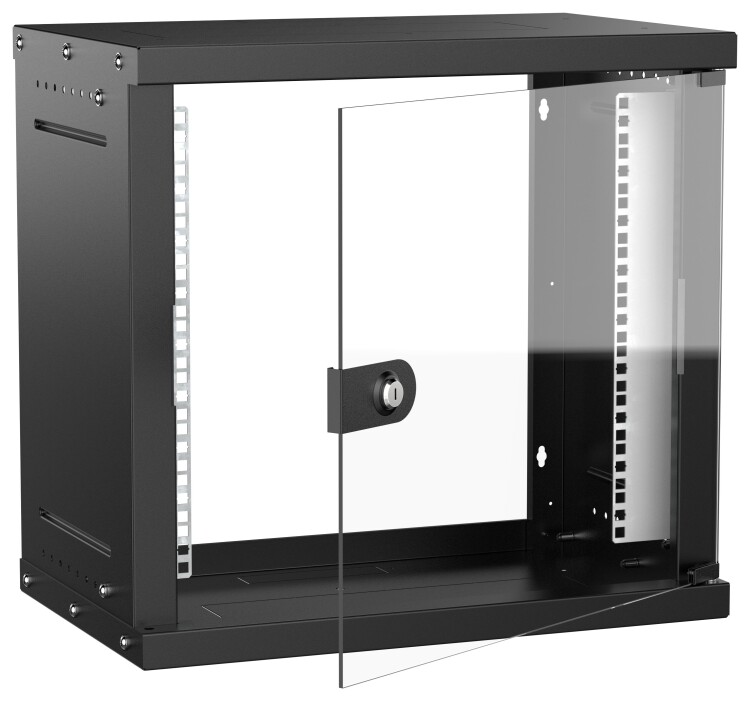 Шкаф настенный 19" 9U 550х350мм стеклянная дверь черный GENERICA