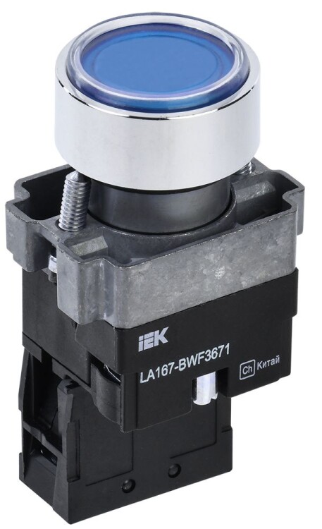 Кнопка управления LA167-BWF3671 d=22мм RC 1NO с подсветкой синяя IEK