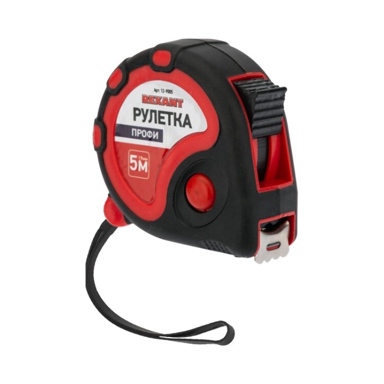 Измерительная рулетка REXANT Профи необходима при проведении измерительных работ в строительстве, хозяйстве, ландшафтных и геодезических исследованиях. Двухкомпонентный прорезиненный корпус, выполненный из ударопрочного пластика, не скользит в руках. Прочное полотно без изломов имеет глянцевое покрытие. Для удобства использования предусмотрены кнопки стопора и фиксации тормоза. Инструмент оснащен удобным зацепом с отверстием посередине, которое позволяет зафиксировать полотно рулетки на шляпке гвоздя или самореза. На корпусе расположена клипса-зажим для фиксации рулетки на ремне, кармане или поясной сумке. Ремешок позволяет надевать инструмент на запястье, чтобы освободить руки для работы.