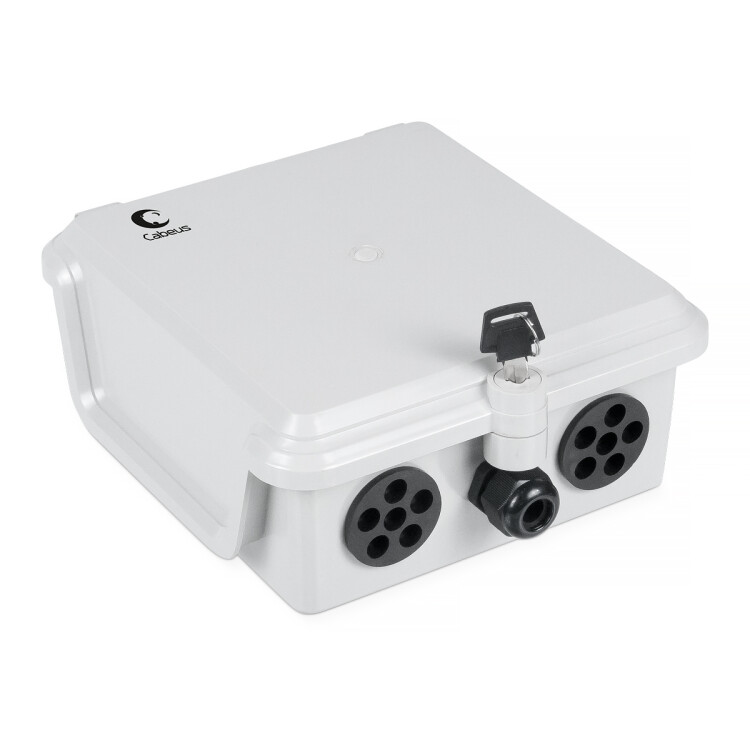 Коробка распределительная (пластик) предназначена для организации, вне здания, телефонного узла коммутации с ограниченным доступом. Позволяет установить 5 плинтов типа KRONE. Крепление распределительной коробки производится на стену. Крепление плинтов производится на монтажный хомут внутри коробки. Имеет 1 герметичный кабельный ввод PG13,5 и 2 резиновые манжеты. Закрывается на ключ. Класс защиты IP54. Возможна установка кассеты для грозоразрядников.