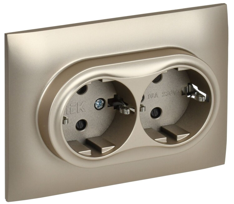 SKANDY Розетка 2-местная с заземлением с защитными шторками 16А в сборе SK-R07Sh шампань IEK