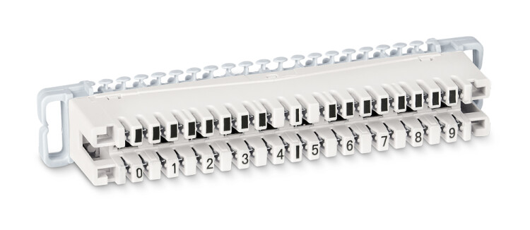 Плинт размыкаемый KRONE предназначен для использования в телефонных линиях для организации разъемного соединения. Такой плинт обеспечивает возможность разрыва цепи с помощью размыкающих вставок на одну пару (PD-1) или десять пар (PD-10). Конструкция плинта предполагает его установку в настенные монтажные хомуты или монтажные хомуты, устанавливаемые в стандартные шкафы или стойки 19”. Возможна также установка комплексной защиты от перенапряжений в виде кассеты для разрядников (PrMag) с 3-х полюсными газонаполненными разрядниками (3-pole GTA). Тестирование соединений может осуществляться с использованием тестовых шнуров TC-4-pin-6P4C или TC-4-pin-ST. Маркировка кроссировочной стороны плинтов произведена от 0 до 9.