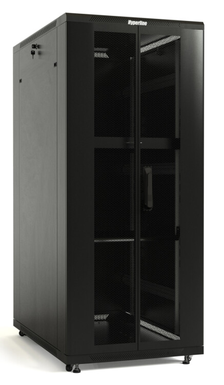 Шкаф напольный 19", 37U, 1833х600х1200мм, перф. перед. дверь, черный, Hyperline TTB-3762-DD-RAL9004