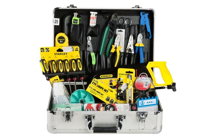 Предназначен для разделки и монтажа оптического кабеля (ВОЛС). Он укомплектован необходимыми для этих целей инструментами Greenlee и других ведущих производителей (вплоть до лупы, фонарика и салфеток для притирания волокна). Набор пригоден для разделки подвесных, городских и магистрально-зоновых волоконно-оптических кабелей при монтаже оптических линий связи. Имея в своем распоряжении НИМ-25, можно работать не только с легким универсальным внутриобъектовым кабелем, но и с бронированным кабелем, предназначенным для внешней прокладки. Все инструменты удобно распределены по специальным отделениям и карманам жесткого корпуса, так что надежное хранение и быстрый доступ к ним гарантированы.