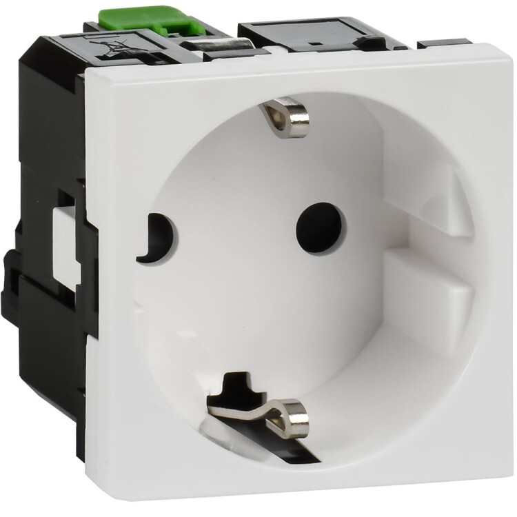 Розетка электрическая штепсельная с безвинтовыми зажимами предназначена для присоединения однофазных электрических потребителей к сети переменного тока напряжением 250В~ и частотой 50/60 Гц. Розетка поставляется с лицевой панель и устанавливаются в кабель-каналы DLP и Metra посредством соответствующих суппорт-рамок и в систему организации рабочих мест (лючки и колонны). Цвет: белый.