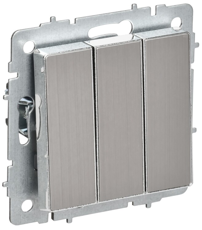 BRITE Выключатель 3-клавишный 10А ВС10-3-0-БрГН металл хром/никель IEK