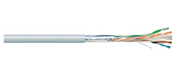 Hyperline FUTP4-C6-S23-IN-LSZH-GY-305 (305 м) Кабель витая пара, экранированный F/UTP, общий экран фольга, категория 6, 4 пары 23 AWG, 4х2х0,56 мм, однопроволочные жилы, LSZH, нг(А)-HF, внутренний -40°C – +75°C, серый, системная гарантия 25 лет.