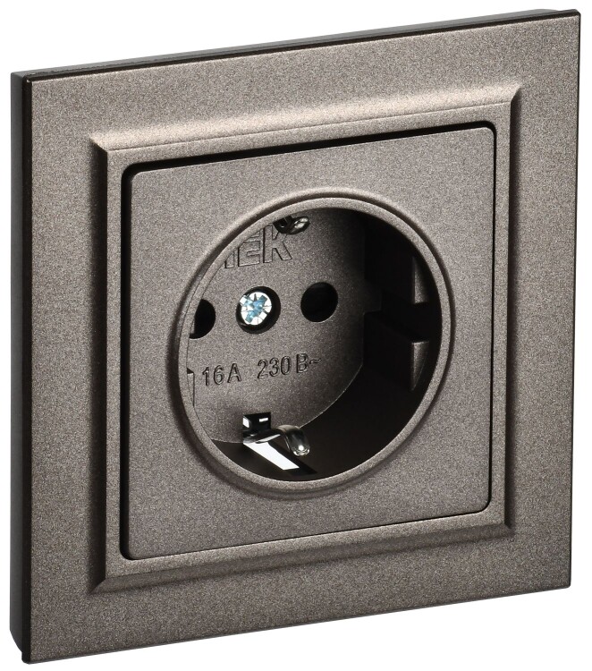 BRITE Розетка 1-местная с заземлением с защитными шторками 16А в сборе РСР14-1-0-БрТБ темная бронза
